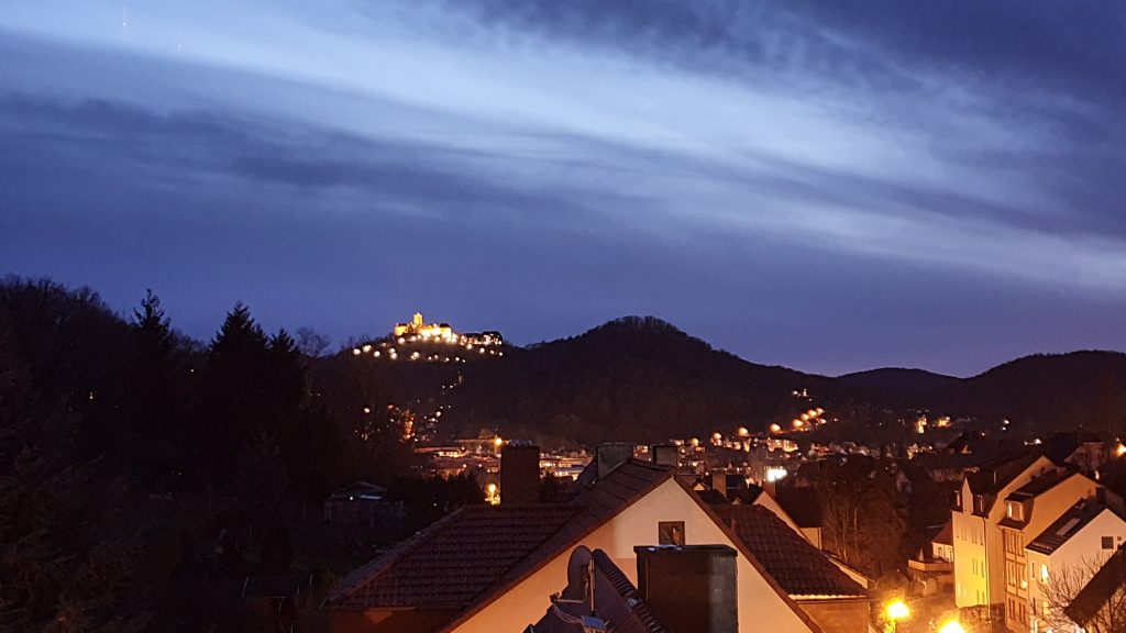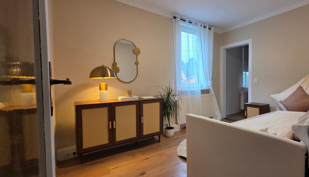 Die Ferienwohnung Schöne Aussicht befindet sich in der ersten Etage und ist mit allen ausgestattet was für einen entspannten Aufenthalt in Eisenach notwendig ist. Auf 70m² befinden sich 2 Schlafzimmer, ein Wohnzimmer, Wohn-Küche, kleines Bad mit Dusche und WC welche für ausreichend Platz zum Wohlfühlen sorgen.