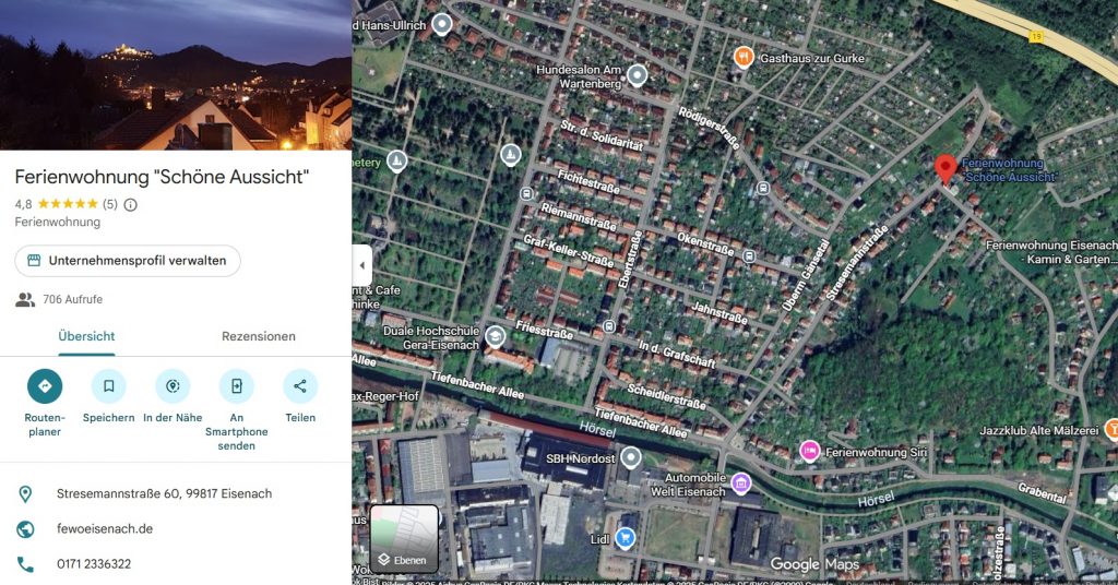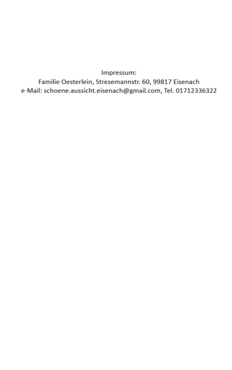 Bei Fragen oder Reservierungswünschen kontaktieren Sie uns bitte per e-Mail: schoene.aussicht.eisenach@gmail.com